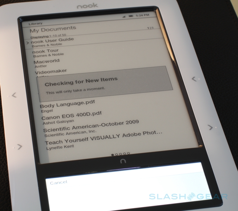 For a user new to the ebook segment it's unlikely to present too much of an issue, especially if they're content to buy their paid-content from Barnes & Noble and occasionally throw the odd PDF file on from the internet. For those who have already built up a library of files, it's a tougher sell: Kindle scores points merely by virtue of being first-to-market, and we can't imagine B&N will be happy to offer free replacements for those wanting to jump the Amazon ship. If your files are DRM-free then that makes things easier; you can't use WiFi to transfer them wirelessly to the nook, but you can side-load them via USB or microSD card, and Barnes & Noble include the necessary USB to microUSB cable in the box (together with a compact AC adapter that supports international voltages). Plugging the nook into a computer shows folders for audiobooks, "my B&N downloads", documents, music, screensavers and wallpaper.