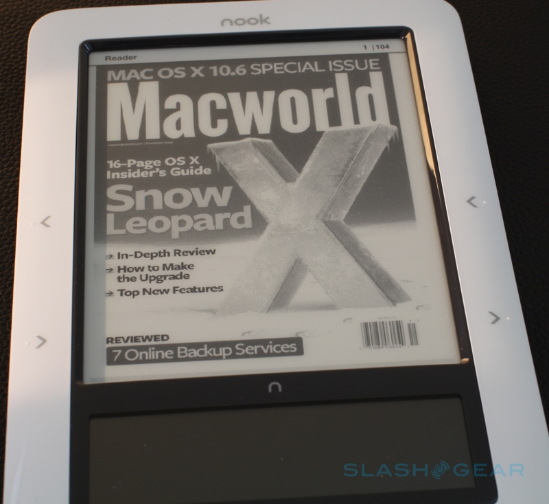 Since the nook uses the same sort of E Ink panel as the Kindle – and most other ebook readers on the market – the actual reading experience is pretty familiar. Text is crisp and sharp-edged, with 2-3 font styles and different sizes supported, and since there's no backlighting it's an easier read than attempting to do the same with an LCD screen. Barnes & Noble also offer periodicals on the nook – which can be automatically delivered each day via the wireless connection, if it's turned on – and while the full range wasn't prepared in time for our review, these are especially formatted to suit the reader's display. The end result is a clean reading experience, similar in many ways to that on the iPhone.
