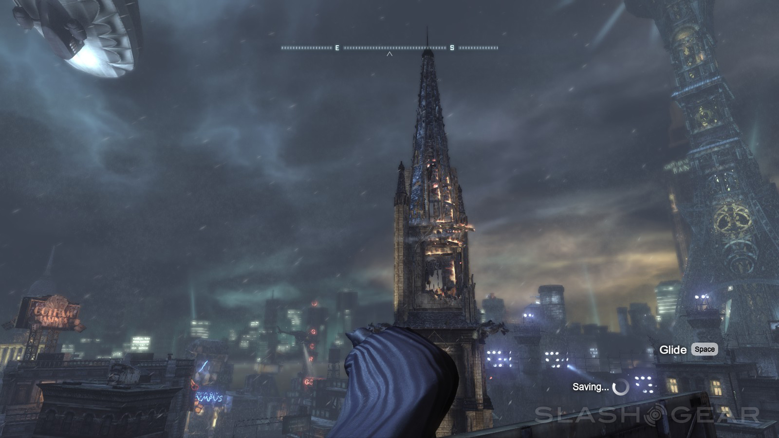 You've got levels on top of levels of ways to interact with your environment, from punching a bad guy in the face to attaching a line to a horizon scaffold to lower yourself down on top of the enemy head-first. You can attack a villain from above, flipping down to knock him out with your boot. You can make a glide-attack from a half-mile above a group of gangsters directly to a fellow's face. Toss your Remote Controlled Batarang and make it flip and fly from your hand down the aisle, around the corner, and under a table to hit a notorious fellow in the kneecap. You will know the meaning of a diverse set of views and controls when you work here in the city.