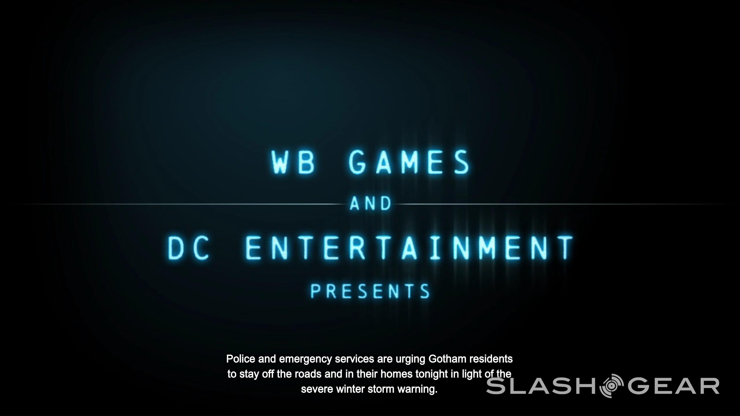 "Outside the Batcave, Gotham City is ready to be explored in full. This map is twice the size of the open-world map of Arkham City. Here you'll find NVIDIA's optimization taking full effect. One example of how realistic NVIDIA's optimizations made this game, Mattes showed off the dynamic snow system in a simple demonstration – walking around Gotham City on Christmas Eve.