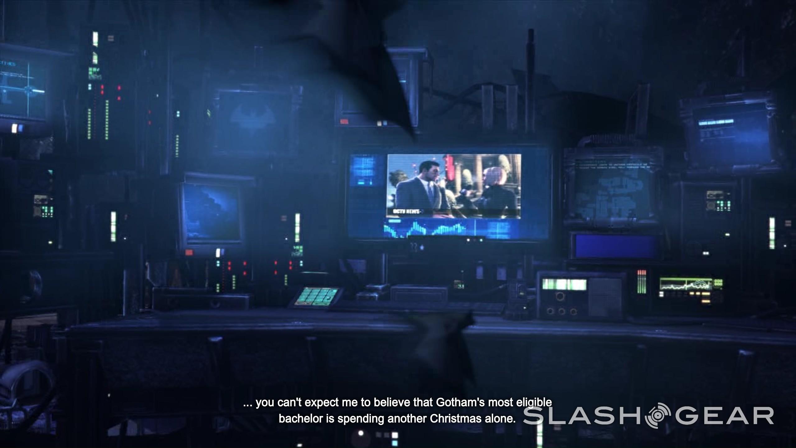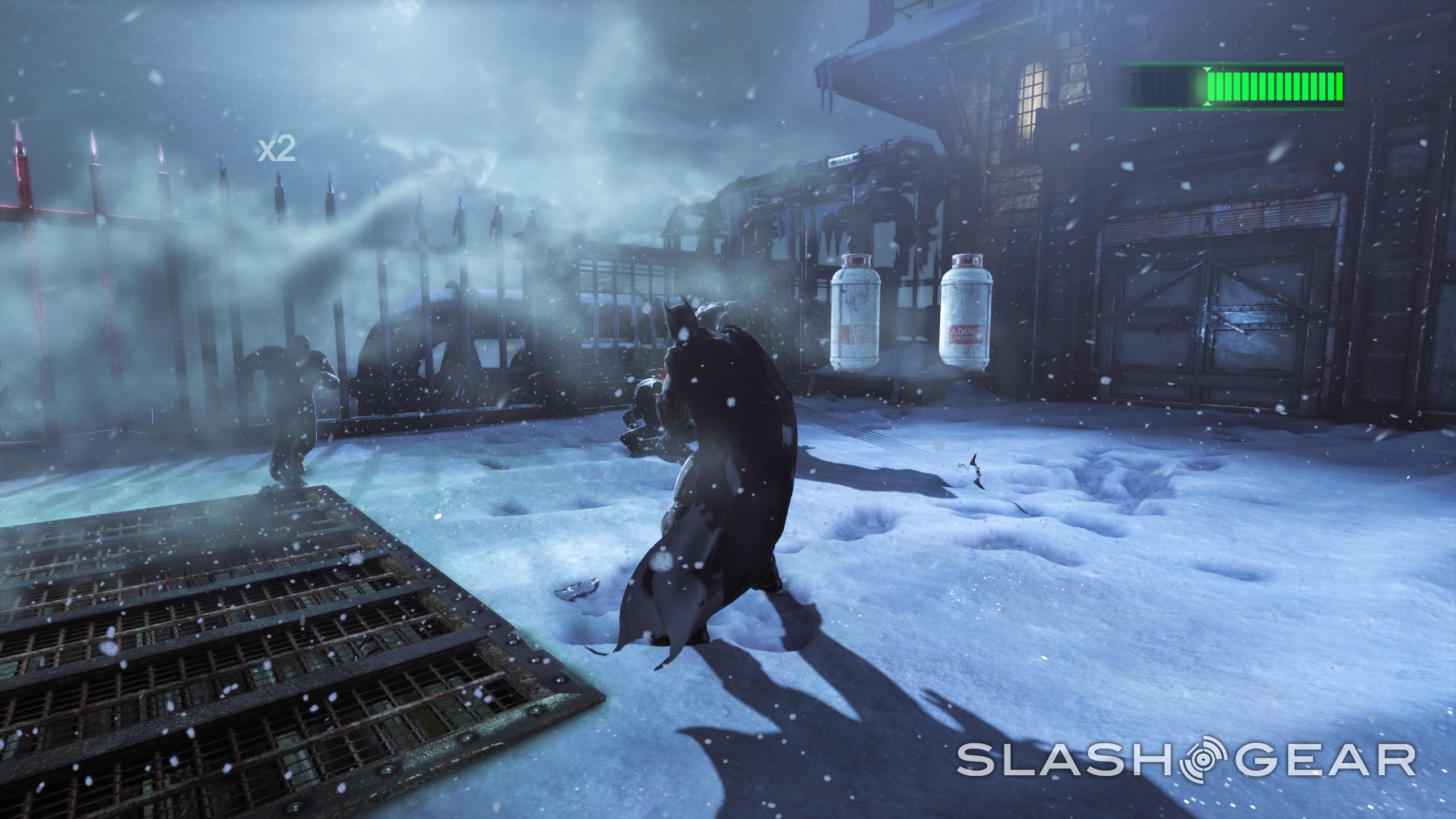Here you'll find Batman's footsteps sticking – snow moves, and different locations have different amounts of snow. Snow falls from the sky and is moved when Batman flies through it. And this is only the beginning.