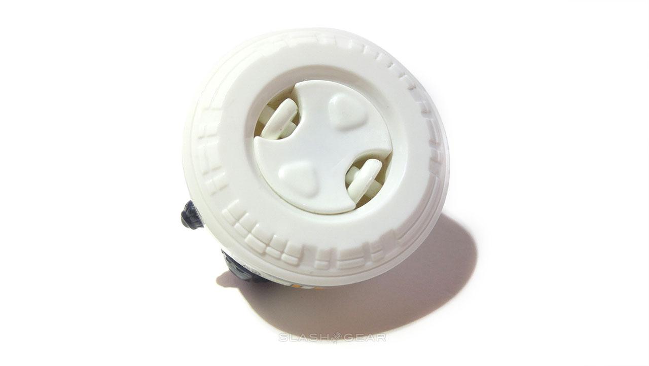 This BB-8 has a wireless charger that does the same thing as each of the other wireless chargers with other Sphero devices, only here it's got a rubbery top that holds the device in place while it's charging up – also there's a blue light that blinks while BB-8 is charging and stays blue when he's charged.