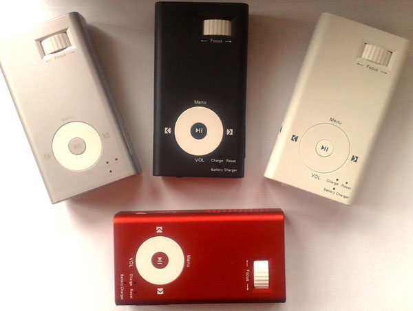 There's also an AV-out socket and a 3.5mm headphone jack, plus an integrated battery and a microSD slot happy with up to 8GB cards. The Beambox Evolution R-1 will be available in black, silver, white and red.