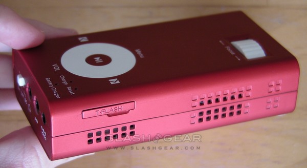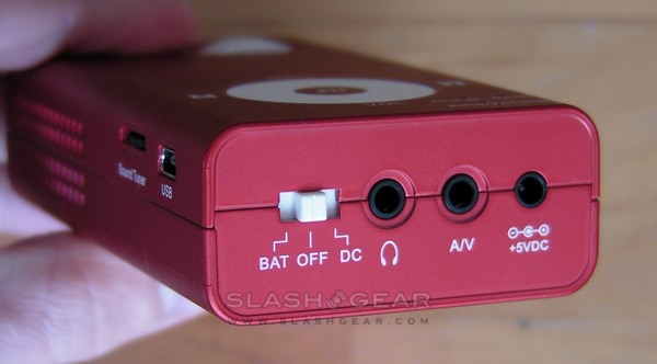For that, the Evolution R1 has 1GB of onboard storage and a microSD slot content with up to 4GB cards. File format support is broad, too, including flash-video, various MPEG formats and WMV files, together with audio and image files too (full list here). The AV input takes standard audio L/R and video component signals, and the rechargeable battery is apparently good for up to 90 minutes runtime.