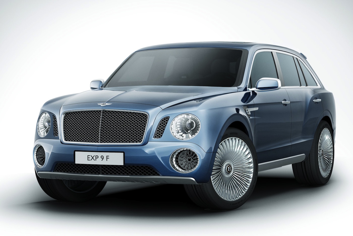 As terrifying car concepts go, Bentley's new EXP 9 F SUV Design Concept will take some beating: from the peasant-snorting grille up front to the puckered tailpipes bringing up the rear, it's a hymn to automotive excess. Revealed at the Geneva Motor Show, the EXP 9 F is described as a "potential" third model-line alongside Bentley's Mulsanne and Continental ranges, with a 6.0 litre, twin turbocharged W12 engine and 8 speed transmission shunting power through all-wheel drive, while passengers are cosseted in leather and polished gunmetal. Oh, and there's a big bird of prey, too.