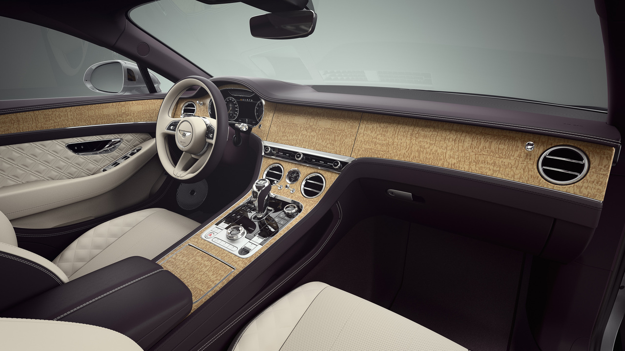 Bentley is offering the stone veneers in four colors (Autumn White, Copper, Terra Red, and Galaxy) and are available as a single or dual finish in combination with gloss black veneers or open-pore wood. Speaking of wood, you have a choice between Liquid Amber, Tamo Ash, or Dark Burr Walnut veneers – with an open pore finish, of course – while piano painted veneers are also available if you wish to add a splash of color to your Bentley's interior.