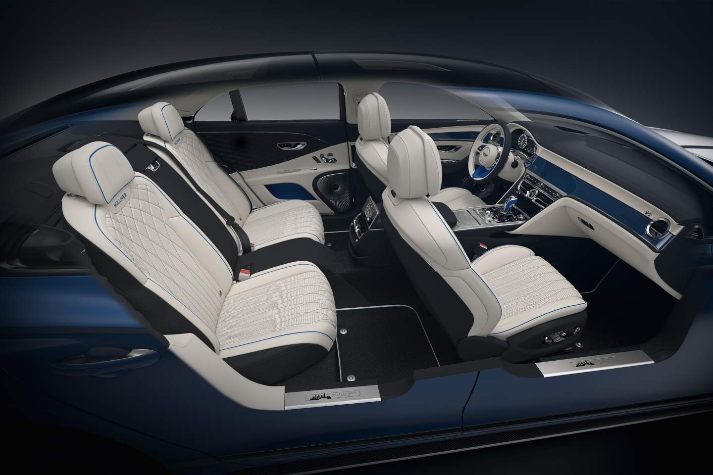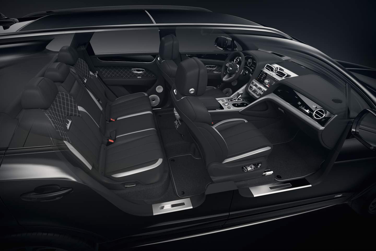 All members of the Mulliner Skyline Collection will wear a unique Onyx black paint applied by hand and robots, said Bentley. Other noteworthy features include 22-inch black and silver alloy wheels, darker exterior trim, LED welcome lighting, and premium silver interior trim.