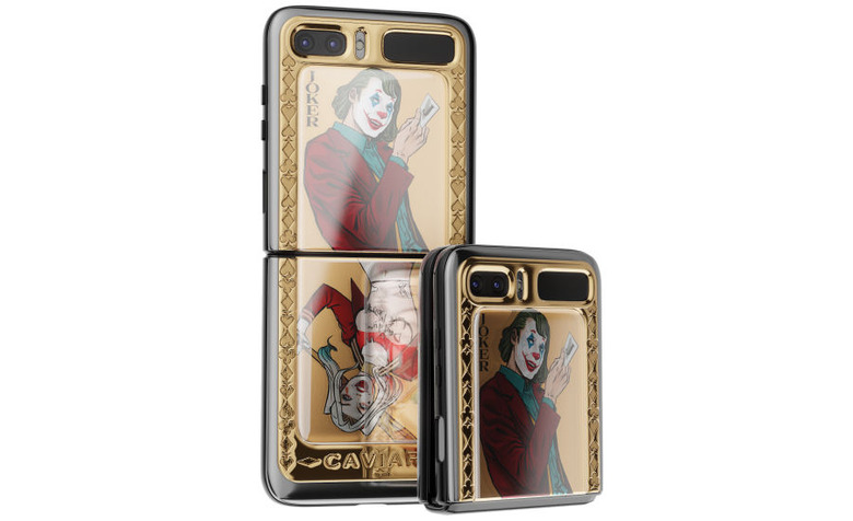 Joker and his other half, Harley Quinn, occupy both halves of the Galaxy Z Flip in this curious exclusive that looks nothing close to $5,210. Modified by Russian jewellers Caviar, the gold plating alone could won over a few fans, but it is the cartoon drawings that make the design look like a cheap $10 phone case bought from a push cart.