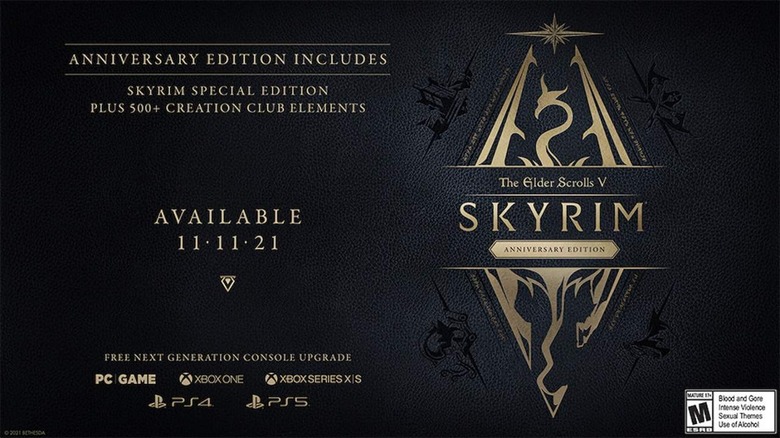 We do know that Skyrim: Anniversary Edition is going to launch on PS4, PS5, Xbox One, Xbox Series X|S, PC, and Xbox Game Pass on November 11th, with a free next-gen upgrade for players who own a PlayStation 5 or Xbox Series X|S. We'll let you know when more details regarding pricing – both the upgrade price and the standalone price – are revealed, but otherwise, look for the Anniversary Edition to drop in November.