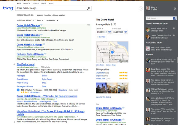 Furthermore, Bing will also suggest external experts from Twitter, Foursquare, Quora, LinkedIn, Google+ and Blogger who might also be able to help. The sidebar will also hold the Activity feed, a record of all ongoing and previous queries.