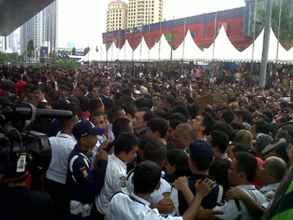 I'm having a hard time wrapping my head around the fact that the Blackberry smartphone is so popular in Indonesia that it sparked a near riot. RIM chose Jakarta, Indonesia as the place to launch the new Blackberry Bold 9790 smartphone. Hoards of people turned up for the launch event. One of the reasons for such a huge crowd was a special discount.