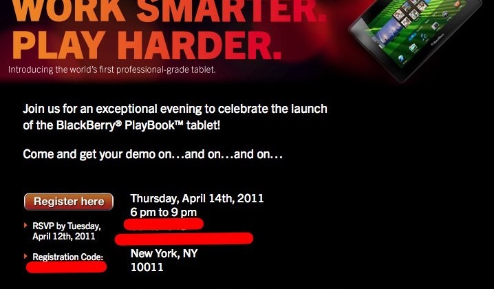 We've been pumped up about this device for what seems like an eternity. The BlackBerry PlayBook, now an unlikely hero in an intensely rapidly expanding and changing tablet market. What this event will certainly contain is a formal introduction to the near-final build of the PlayBook itself along with a demo and possibly the chance to bring one or two of the little beauts home with us. This event is going to be taking place April 14th at 6PM EST in New York, NY.