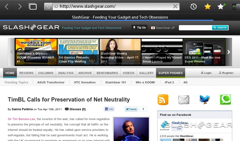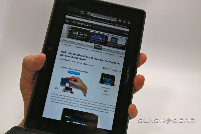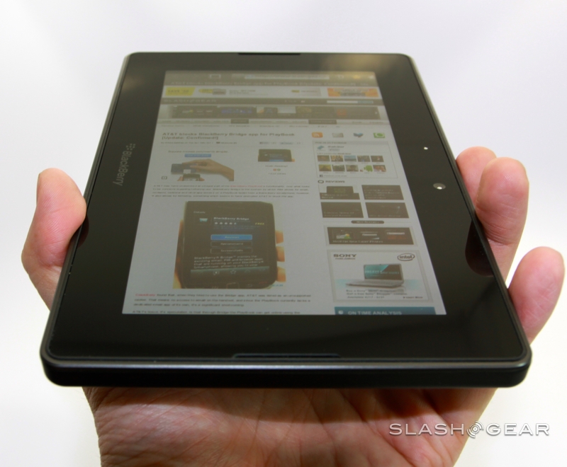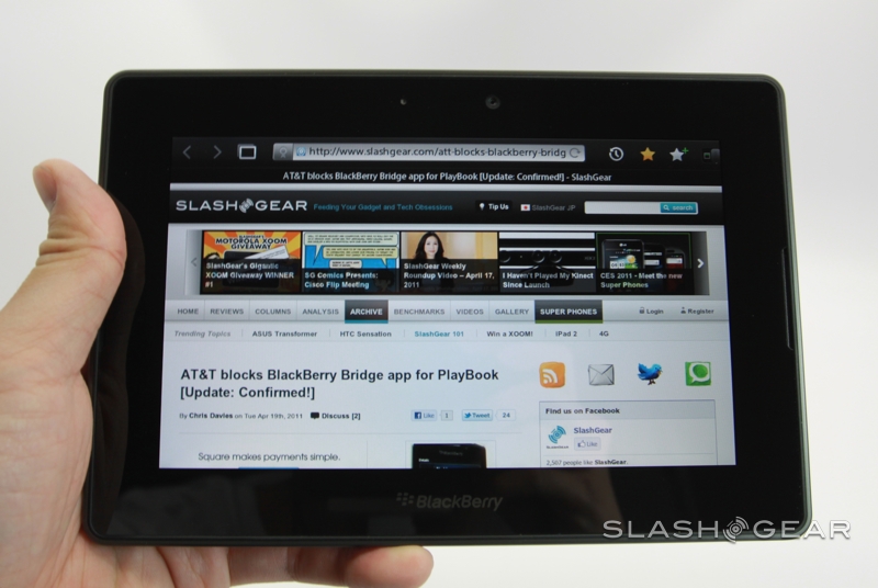 Relative value is a more difficult proposition. The PlayBook is obviously smaller than the iPad 2 and XOOM, a positive for those who want a more pocketable tablet but something that can make for a more cramped browsing experience. The enterprise security of keeping key data locked up on a user's BlackBerry smartphone rather than on the tablet makes sense in some ways, but it also artificially limits the potential audience considerably. Lots of people don't have a BlackBerry handset but might want a PlayBook tablet, and right now they're getting half the software experience out-of-the-box that Android or iOS slates offer.