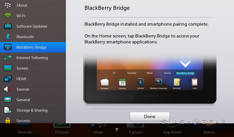 BlackBerry PlayBook hardware and OS walkthrough, BlackBerry Bridge setup and demo video: