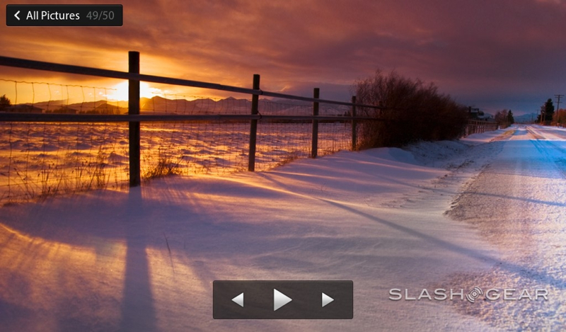 The gestures are welcome additions, working well on the 7-inch form-factor. Swiping up from the bottom bezel shows you all the currently running apps – each still quietly doing its thing in the background – as webOS-like tiles, and you can then swipe up on each tile to force-close it. A swipe from the left or right bezel moves between running apps, while swiping down from the top bezel opens a context-sensitive menu bar for whichever app has focus. Finally, a swipe from the top corners pops open the status bar, with battery and wireless reports, date/time and quick access to the settings page.