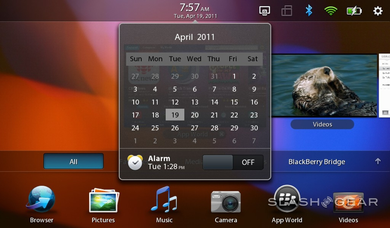When connected, new email and appointment reminders are flagged up in the status bar, and you can – with a little lag from the Bluetooth link – use the apps as normal. Problem is, disconnect the phone and you lose all the Bridge functionality: the apps disappear and all the data is gone with it. If you don't have a BlackBerry to start with then, in its present state, the PlayBook is probably not the tablet for you; RIM says it will be adding native apps later in the year, but right now the slate feels decidedly half-baked without a phone to play with. AT&T is also yet to approve the BlackBerry Bridge app for its devices, which means that, for the moment, the carrier's subscribers are out of luck (unless they're willing to install the app unofficially).