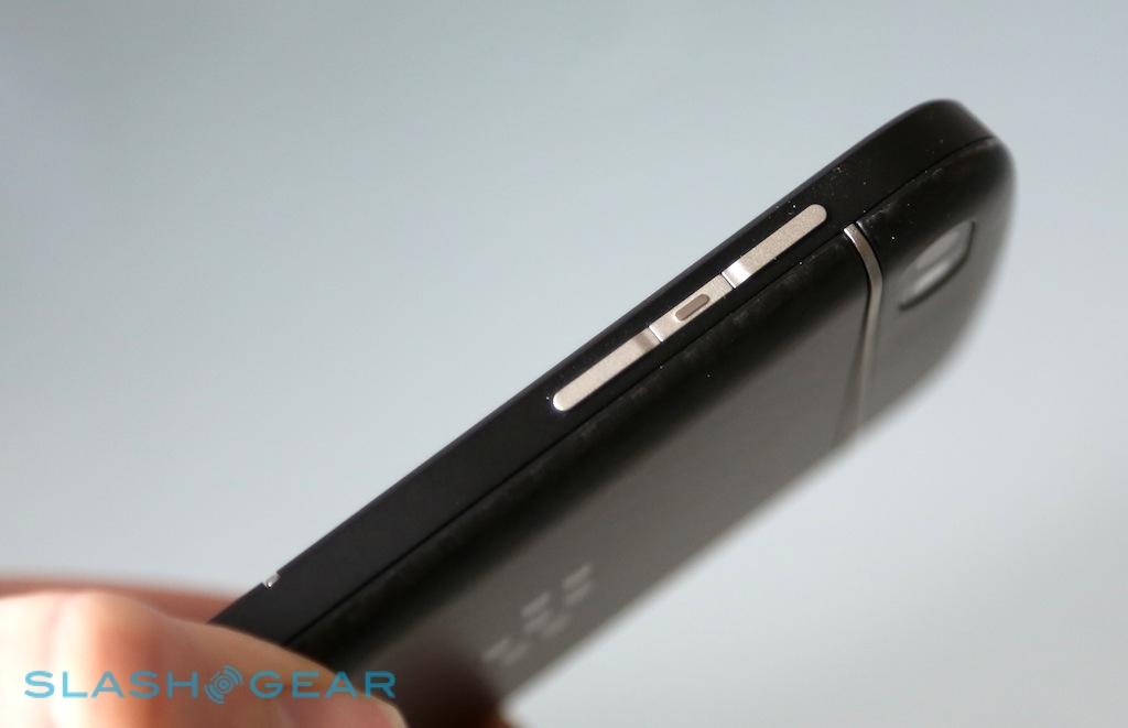 BlackBerry's traditional row of buttons in-between keyboard and display are missing on the Q10, which means the only other physical controls are the power/lock key on the top edge, and the volume controls on the right edge, flanking a voice-command button. The 3.5mm headphone socket is also on the top, while a reasonably sized speaker is on the bottom edge, meaning it won't be blocked no matter whether the Q10 is placed face-up or face-down on the table.