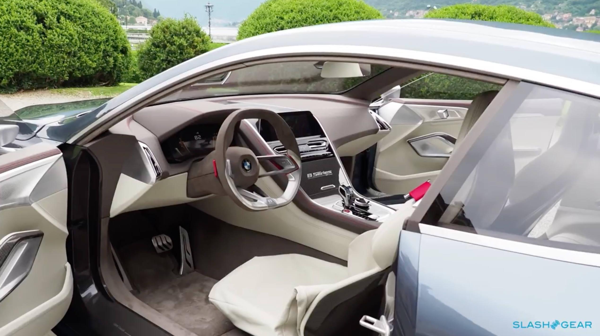 There's a cohesiveness between the Concept 8 Series' external and internal design which suggests BMW's designers went the extra mile over a typical show car. That goes right down to the materials inside out out, like carbon-fiber. The exclusive sport seats, for instance, are wrapped up in a carbon-fiber shell and cuddle your body snugly and comfortably, while also speaking volumes about the performance of the car. They wrap around you the same way a custom Italian suit hangs perfectly on your body, but again, there's no guarantee they'll make it through to the production car.
