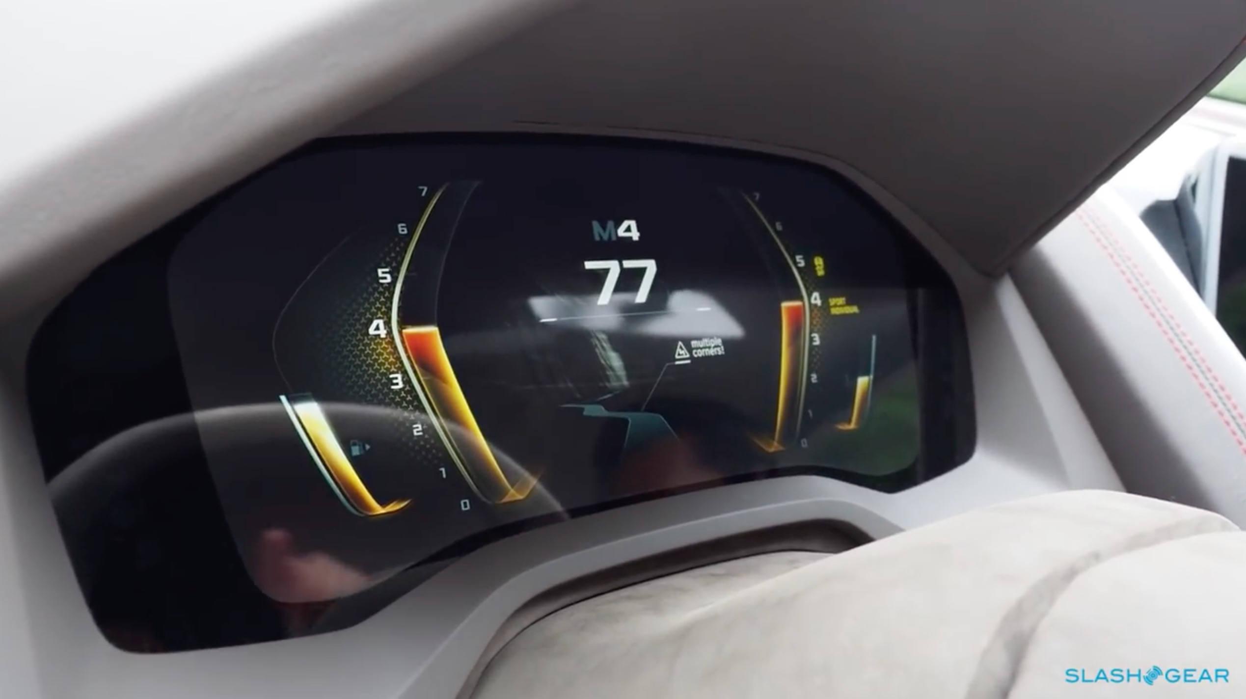 The dashboard, however, showcases the seventh-gen iDrive and is relatively close to production. During BMW's Future Summit in Munich, I got a few quick glances of the new display in front of the driver and, from that sneak-peek, it's looking great. There are two primary modes, each adjusting how you consume details like engine speed, the speedometer, and navigation guidance. Engage sport mode, for instance, and the digital cluster puts the speedo dead center, flanked by a pair of vertical rev-counters.