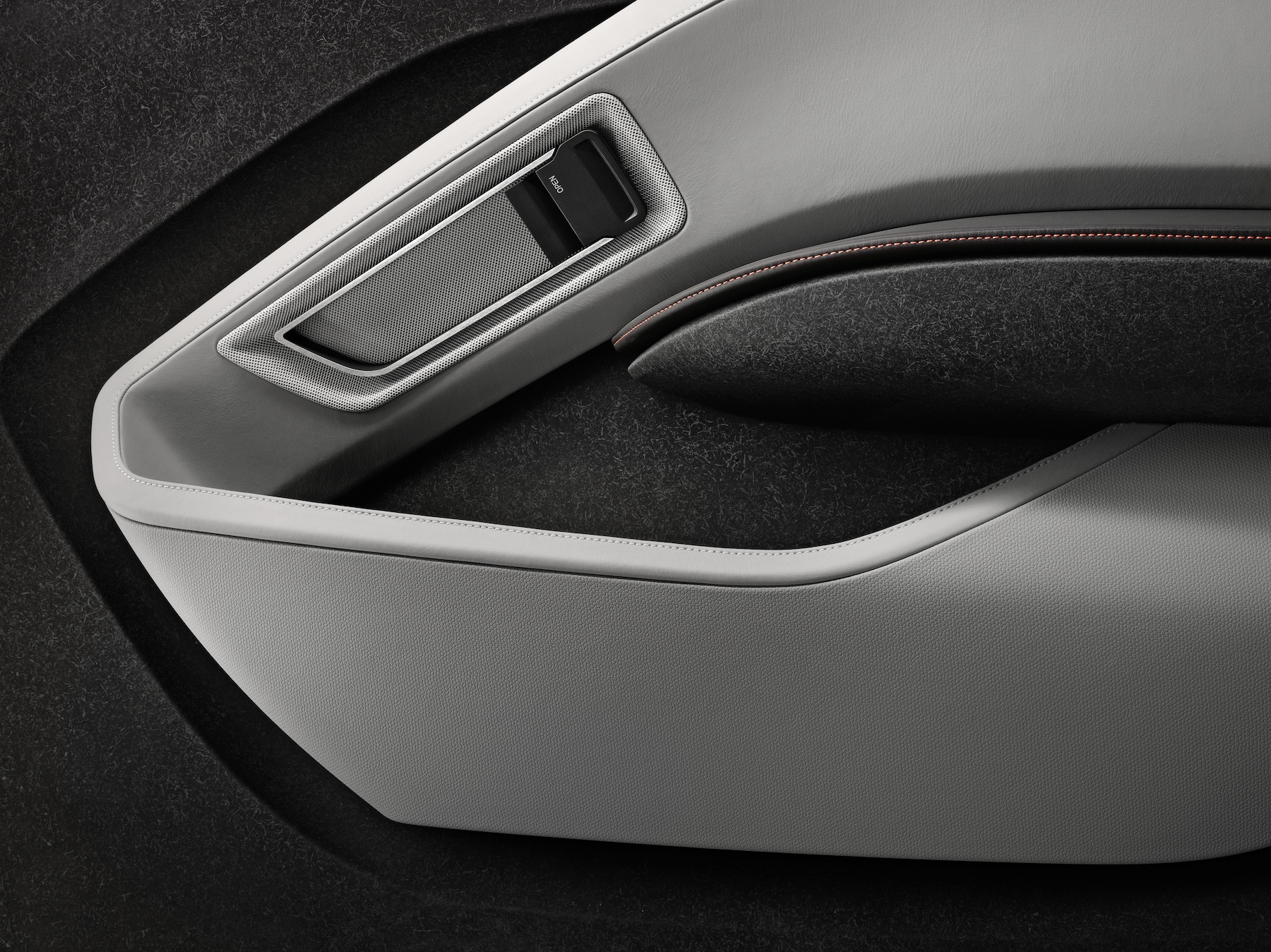 That's not to say the aesthetic is solely intended for visual appeal. The front apron's complex venting creates an "air curtain" which pushes air around the wheel arches, while the rear apron has a diffuser to tweak the rear air flow. CFRP's inherent strength means no B-pillar is required for structural purposes, so the two rear seats are more easily accessed; the scalloped shoulder line also maximizes light in the back. While the 20-inch wheels are on the large side, they're narrow and fitted with low-resistance tires.