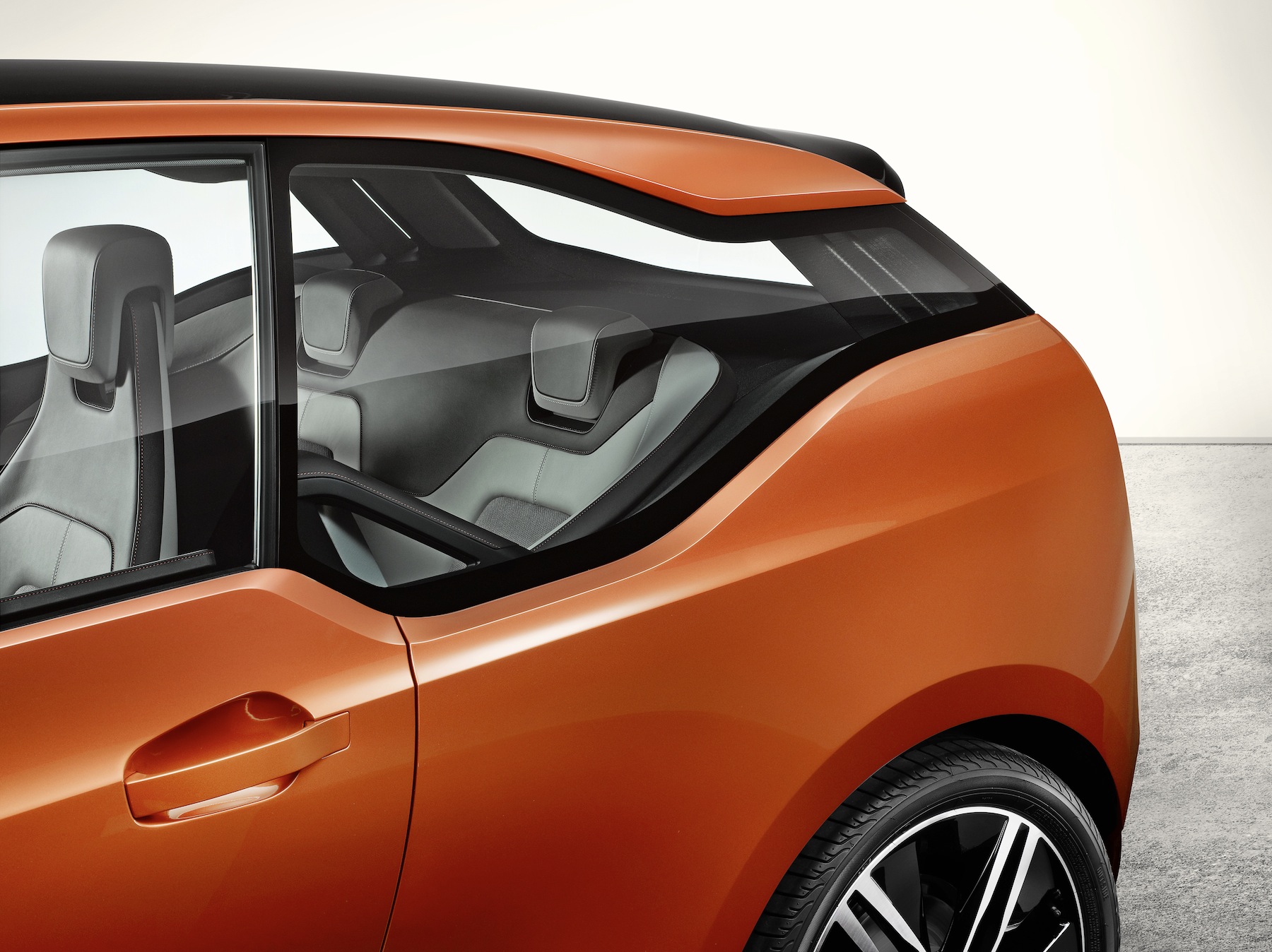 The Drive section – shared with the previous BMW i3 Concept – is made primarily of aluminum, again to keep it light and strong, while the modularity of the system would allow BWM greater flexibility in how future EVs are pieced together to target different market segments. For the i3 Concept Coupe, it's a case of a distinctive "layered" sports design, with some of the CFRP left untouched by the custom Solar Orange paint so that its high-gloss grain is visible.