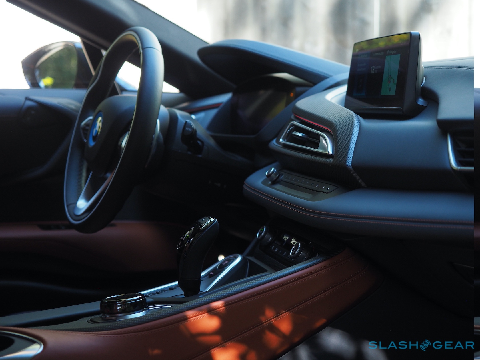 It leaves BMW's car feeling agile and urgent through twisting roads, the combination of all-wheel drive and a curb weight that's unusually light even today helping the i8 dart and pivot neatly. In Sport mode you get a weird electronic engine sound overlaid atop the thrumming turbo engine and the not-unpleasant whine of the electrics. It doesn't sound like something that should be enjoyable, but it oddly is.