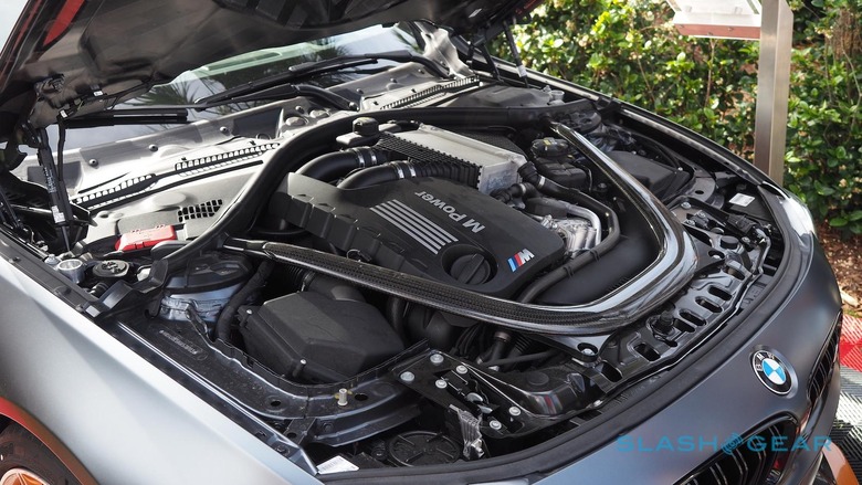 BMW's 3.0-liter M TwinPower inline 6-cylinder engine gets a working over too, good for up to 493 horsepower and 443 lb-ft. of torque. Quoted top speed is 189.5 mph, with 0-60 mph in 3.5 seconds; you can either slam through the 7-speed M Double-clutch transmission via the steering wheel paddles yourself, or leave the gearbox to its own devices.