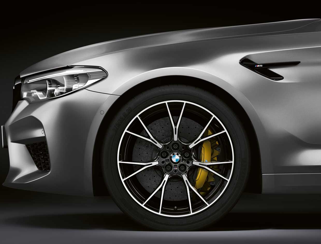 The car is fitted with a special M Sports exhaust to give it improved sound and faster turbo response. That exhaust has flaps that control the sound and features various engine modes. The exhaust has black chrome finishers on the back. Special suspension tuning makes the M5 Competition handle better with increased spring rates for better handling.