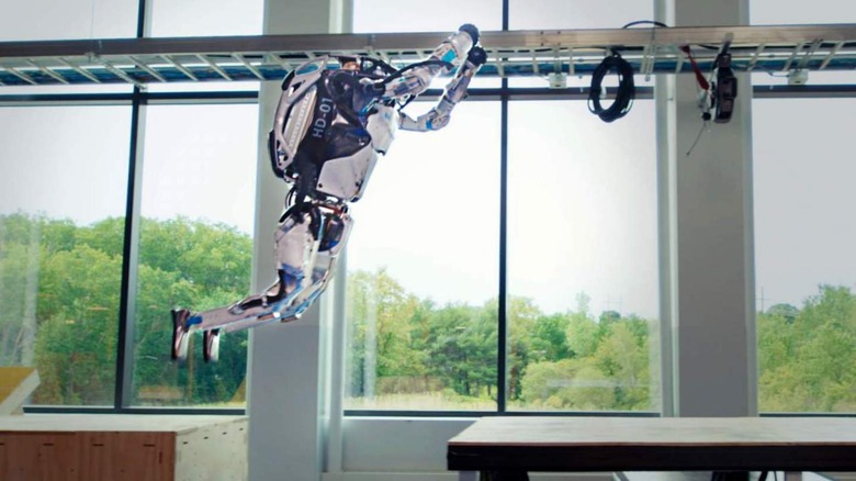 What's important is that the course itself isn't preprogrammed. While it might be easier for Boston Dynamics if they could just load up all the required motions and then have Atlas carry them out in sequence, that sort of preset pattern isn't really useful for when robots have to deal with the changeable real-world. Instead, the developers teach Atlas different core movements, and the robot itself decides how to combine and implement them according to the terrain at hand.