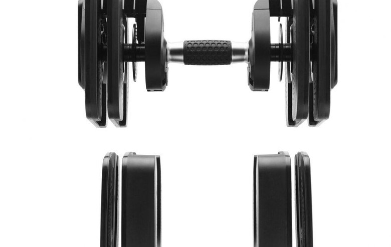 Adjusting the weight is also simpler and more effective. Rather than a dial, the handle itself has become the weight selector. Simply place it in its holster, turn the handle, and it picks up or drops off weights. A small (too small, really) window tells you which weight you've selected.