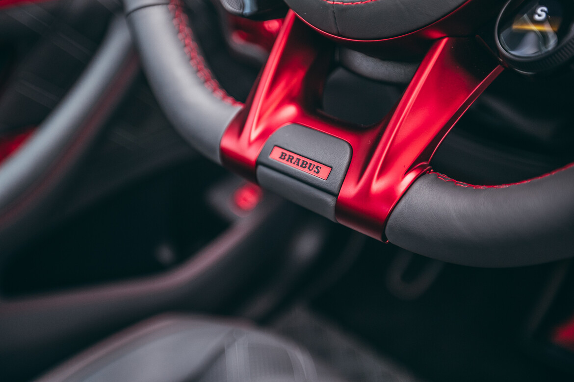 Also included are gorgeous 24-inch Monoblock Platinum Edition Z forged wheels with Brabus Rocket 900 aero discs. But if you want to reach the car's 205 mph top speed, you'll need the smaller 23-inch Brabus Monoblock Y Platinum Edition wheels wrapped in sticky Continental tires. The Brabus 900's Airmatic air suspension also raises or lowers the body by about an inch or 25 millimeters to further improve aerodynamics and handling.