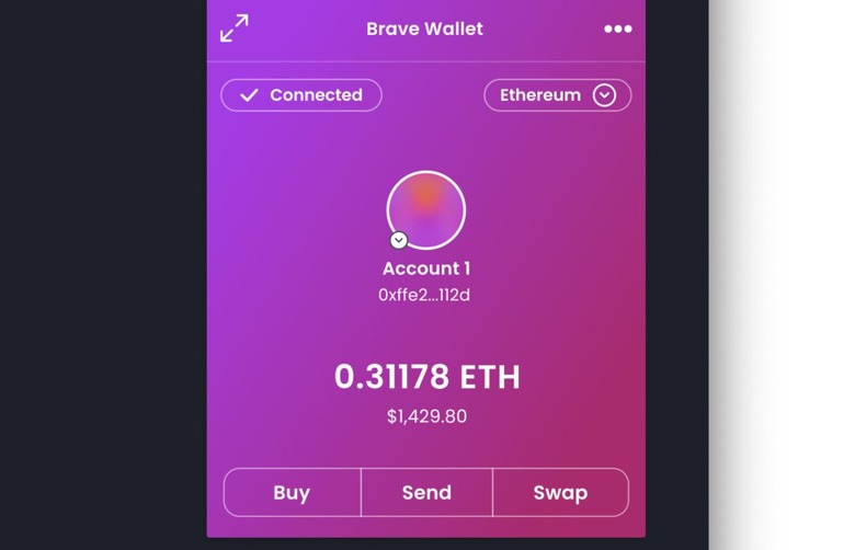Among other things, Brave Wallet can be connected with most Web3 DApps and other crypto wallets. The built-in wallet looks and functions very similar to just about any other crypto wallet. Users have access to their wallet address, can quickly switch between assets with a drop-down menu, and choose between "Buy," "Send," and "Swap" options.