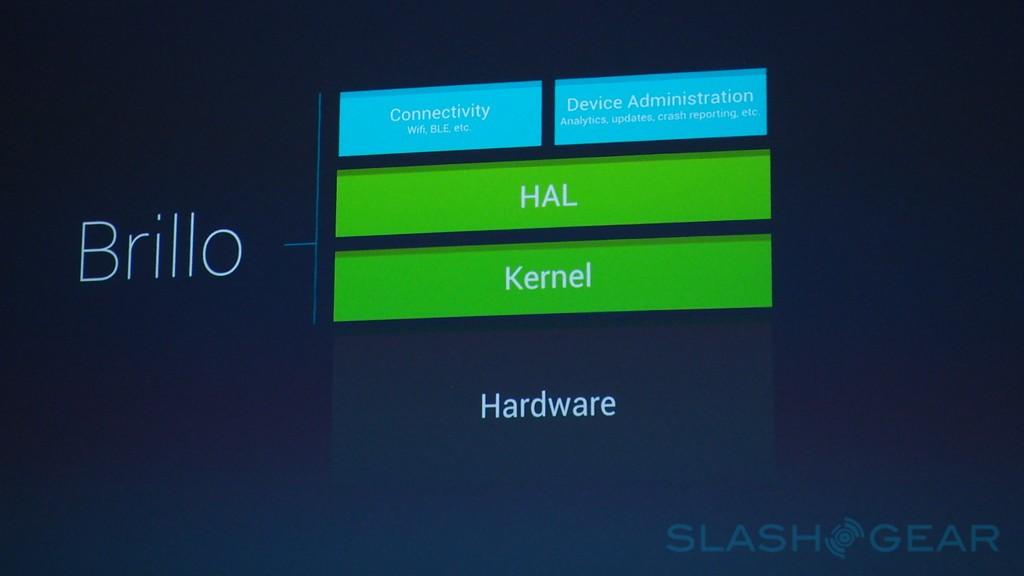 Google has announced Brillo, its play for the Internet of Things, and the Weave common-language that devices from connected locks, fridges, and alarms can interact. "We've taken Android and polished it down – hence the name – this is basically the kernel, the hardware abstraction layer, and the connectivity," Google SVP of Product Sundar Pichai said on-stage during the Google I/O 2015 keynote. And, as rumored, it's Google's most ambitious play for the smart home to-date.