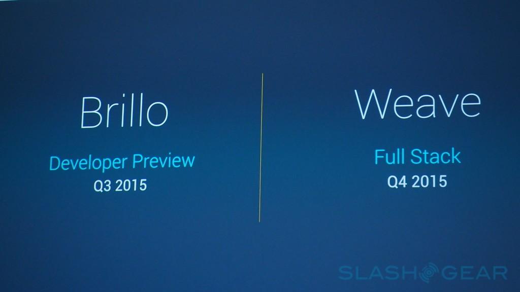 So, we'll have to wait and see how well Google handles the Brillo and Weave deployment, which is due to happen later in 2015. The first Brillo developer preview will land in Q3, Pichai said, while the Weave Full Stack will come in Q4.