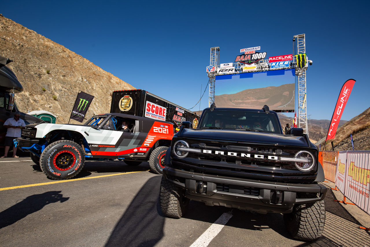 Ford is the official SUV and truck of SCORE-International Off-Road Racing and provides the 2021 F-Series Super Duty Tremor and F-150 Raptor as support vehicles for the Bronco R race team. In the past, the Raptor pickup was tested at Baja. The Bronco R race prototype is designed and built by Ford Performance and Geiser Brothers using a race version of the Bronco High-Performance Off-Road Stability Suspension system with a redesigned independent front suspension and a five-link race-prep rear set up.
