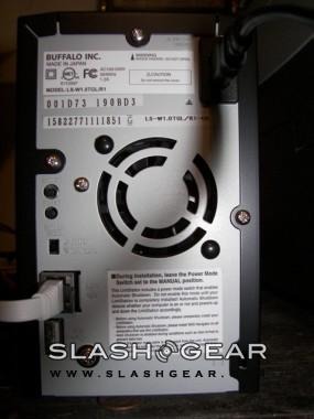 One other thing that surprised me was the size of this thing. It measures in at 3.9x6.4x8.7 inches, which is about the same size as any other dual drive external hard drive, but this thing has some heft with a weight of 6.8 pounds! So, even if you could connect to it directly via USB, it still wouldn't be all that portable of a solution.