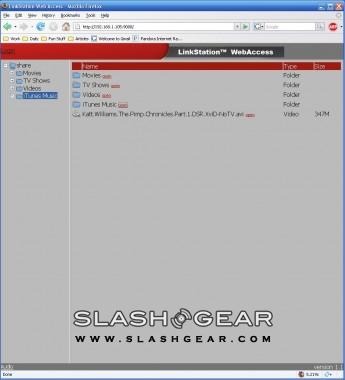 But, once the data was on the drive, accessing it from the web interface on another machine and downloading something was blazing fast, my other desktop hit a little over 5 megabits per second when downloading a file from the drive. Obviously a download from a computer not on the local network, via the Web Access interface is going to be determined by your ISP and your max upload speed. Also, one nifty thing they did have was that you could play music from the drive within the web interface using the QuickTime browser plug-in, or you could download it and play it.