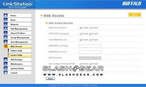 Now, that sounds easy, but for business users there are tons of features to help keep things secure at the same time. First off, you can set up multiple shares on the drives and set up separate user accounts for everyone (or you can assign those permissions in AD) and then set which shares they have access to, this would allow only users with the proper rights access to the drive both internally or externally. Or you can set access to the drive to anyone, and then anyone who has the name of your NAS can go to the Buffalo NAS site and get on your NAS and download stuff. On the NAS' web interface there are tons of other management and security features making this the ultimate in convenience and security.