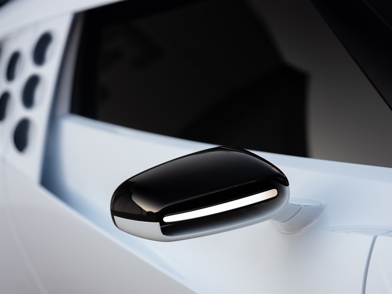Instead of having a dominant and sweeping C-line in the B pillar, the Centodieci has five round air inserts that are positioned in the form of a diamond. More than just a design flourish, however, those air inserts feed vast amounts of air to the hungry W16 engine underneath.