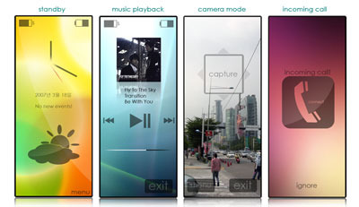 Andrew also envisages a user-replaceable li-ion battery, QVGA camera, SD slot and WiFi, and has even gone so far as to craft screenshots of the UI. It's no afterthought, either – a beguiling blend of iPhone, Helio and PSP interfaces that uses taps and drags.