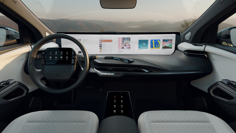 The whole dashboard of the M-Byte is one, wide, sweeping display. A full 48-inches, it promises to be the largest in a production vehicle. It also, however, raised questions as to just why Byton needed such a sizable panel.