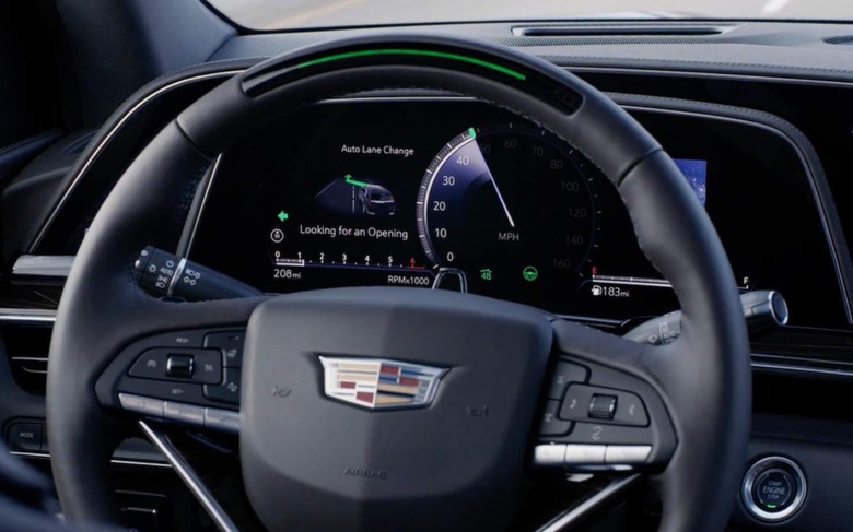 The most obvious improvements of the new architecture are Super Cruise's enhanced features. That began with lane change on demand earlier this year, debuting on the 2021 Cadillac Escalade. With it, tapping the turn signal would cause Super Cruise to shift lanes, assuming its various sensors decided the maneuver was safe.