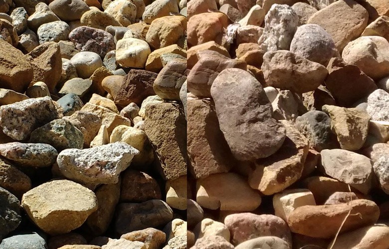 First you're going to see a pile of rocks – this is the only photo we've cut right down the middle because both sides have just as fair a chance at showing you the ins and outs of a variety of rocks anyway. Also right up the middle you should see how individual rocks compare to one another.