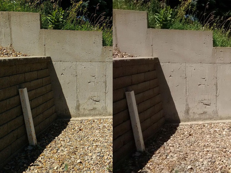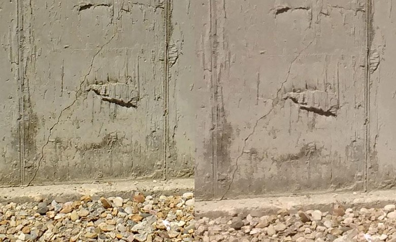 Again we're outdoors with the sun blasting. Notice the ever-so-slight differences when you're further away from the wall, then notice the distinct differences when you get up close. Color handling here should be coming into clear focus for you in the new device's results vs the old.