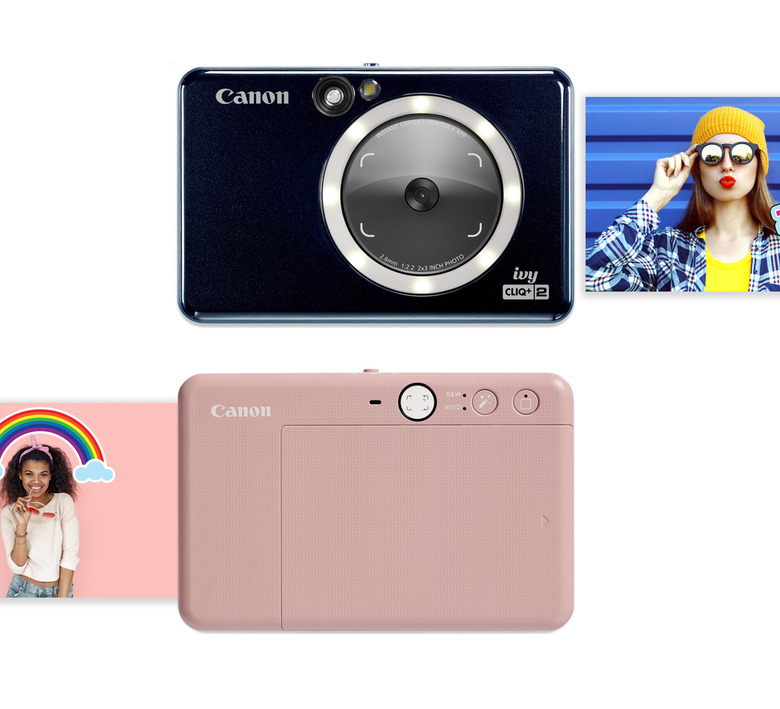 Canon revealed two new cameras today, both with the ability to instantly print stickers of images they've captured. One goes by the name Canon IVY CLIQ+2, the other is called IVY CLIQ2. That's not confusing at all, is it? These "instant camera printer" devices will work with a new sort of pre-cut circle sticker paper, too.
