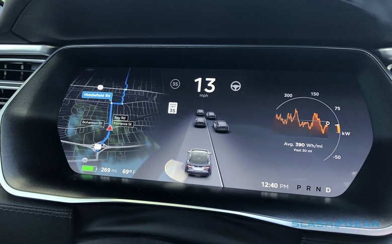 Most systems only show a basic graphic of a car when a vehicle is recognized ahead. Here, Tesla is actually fairly unusual in that its Autopilot interface shows live, moving representations of other vehicles ahead of, and to the side of, the driver's car.