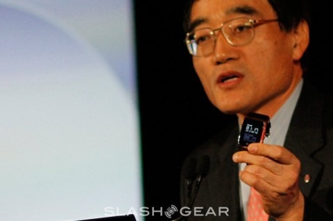 LG have confirmed that their cellphone watch, the LG GD910, will go into production in the later half of 2009. The device, which has full 3G HSDPA connectivity, a 1.43-inch touchscreen and text-to-speech functionality, will go on sale in Europe this year. LG's Dr Woo Paik demonstrated the watch-phone live on stage at LG's press conference at CES this morning, making a speakerphone call.