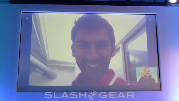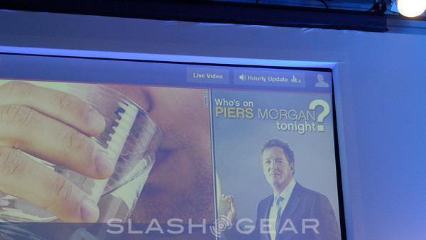 With a single click, they thusly were connected through video chat. After a short bout with attempting to find a user by the name of "Lady Killer," later revealed to be Cee-Lo Green, the user on stage and his friendly other-screen ally were able to connect visually. It's revealed that, in the classic manner, the user's image is tiny in the lower right of the screen while the person they're talking to takes up the entire remainder. This functionality appears to work instantly and smoothly. The video quality isn't perfect, but the video works so well and functions so fast, we're willing to forgive, for now. After the video chat demo, a CNN rep steps on stage to show his and their wares. The Vice President of Mobile for CNN speaks up and out of a CNN app that will be launching for the Honeycomb tablet in the near future. This is a giant gallery-aesthetic app that appears to work very smooth, flicking back and forth between stories, showing live coverage of news via the tablet.