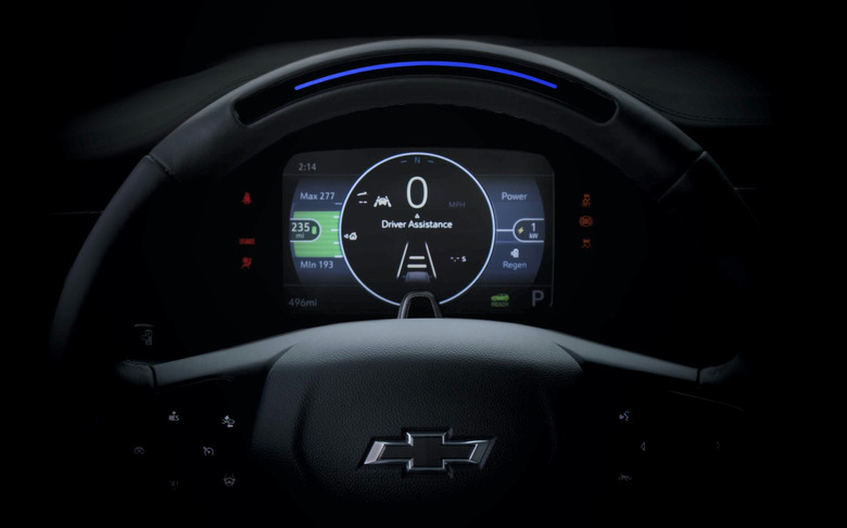 The same core functionality, though, will be the same. Super Cruise builds on adaptive cruise control and lane-keeping with a driver attention camera, monitoring where the driver is looking to ensure they're keeping abreast of what's happening in the road ahead. If they look away for too long, a light bar integrated into the upper section of the steering wheel – which is also used to indicate system status – will flash.