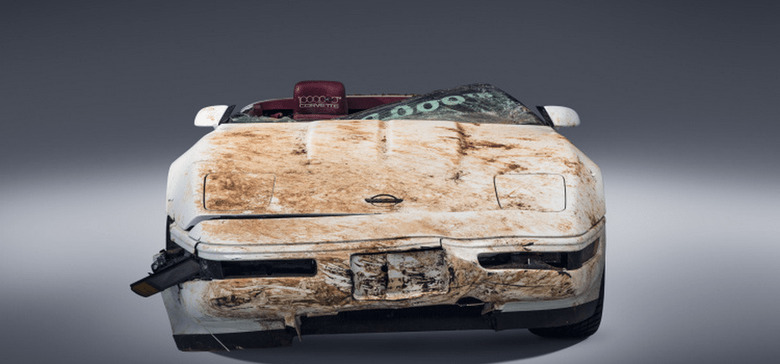 Chevrolet promised to oversee the restoration of a handful of Corvettes that fell into a sinkhole last year that opened under the National Corvette Museum. The first of those restorations is now complete and the car is the 1 millionth Corvette ever made. The images here show how demolished the car was when it was pulled out of the sinkhole.